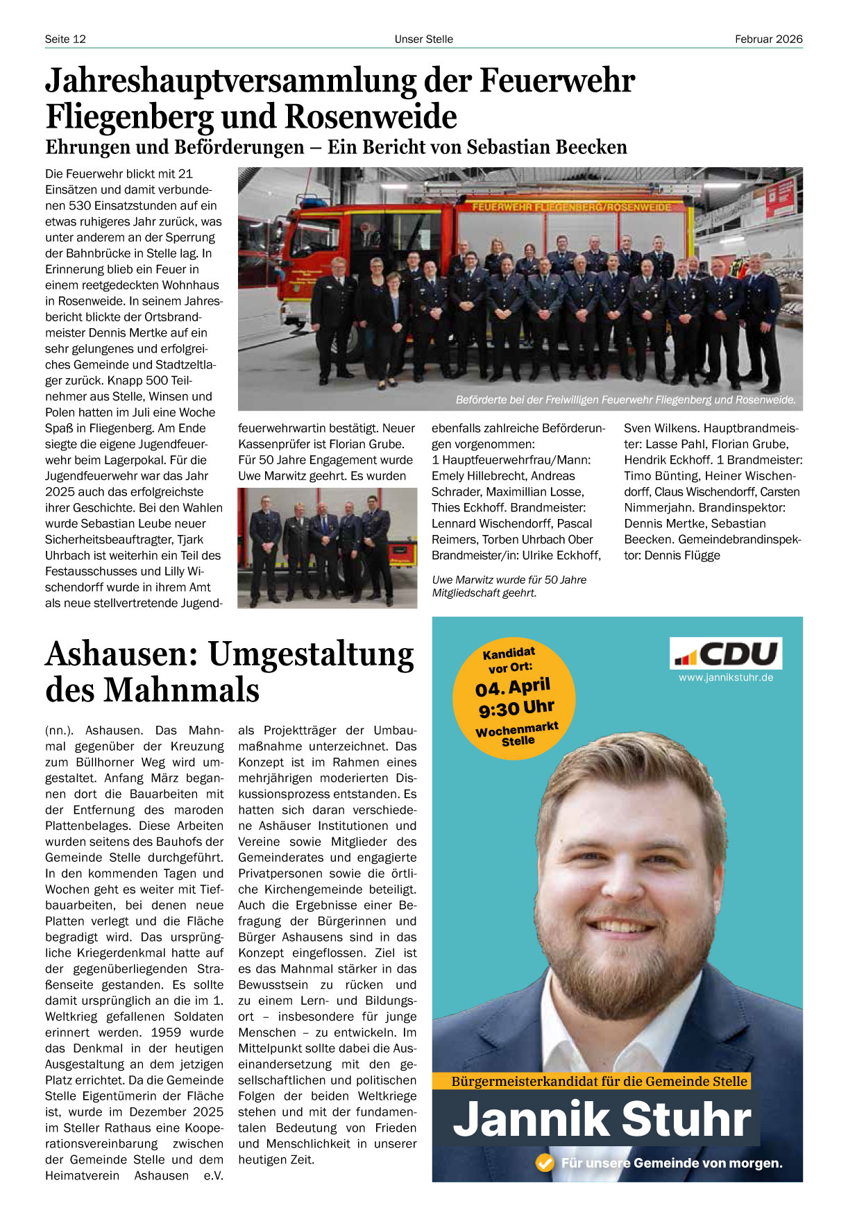 Home Viel Spaß mit der April 2026 Ausgabe „Unser Stelle“! » Ausgabe als PDF-Datei » Ausgabe als PDF-Datei