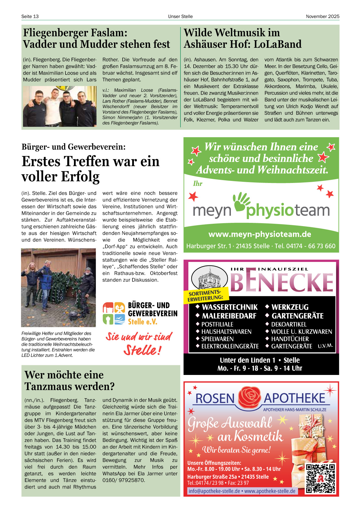 Home Viel Spaß mit der Dezember 2025 Ausgabe „Unser Stelle“! » Ausgabe als PDF-Datei » Ausgabe als PDF-Datei